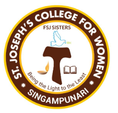 The college coat of arms is a symbolic representation of the institution’s vision, mission, and values.Circular design with a golden-yellow outer ring, Maroon/brown inner background. Top arc: "ST. JOSEPH'S COLLEGE FOR WOMEN" in white capital letters.